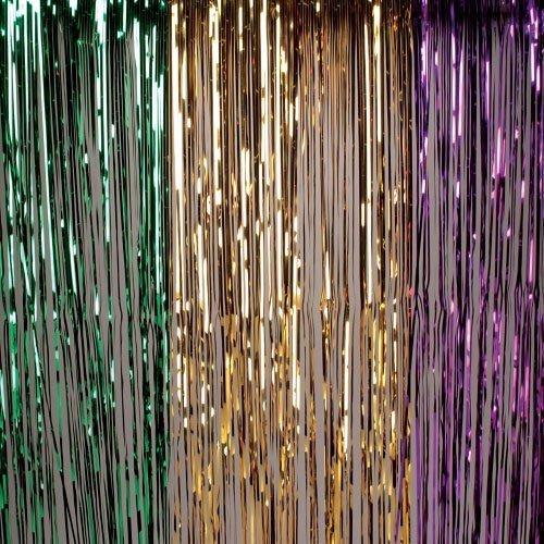 Introducing our dazzling metallic curtains in the vibrant and festive colors of Mardi Gras a perfect way to infuse the spirit of celebration and joy into your space. These curtains showcase the iconic Mardi Gras color palette of gold, green, and purple, making them an ideal choice for adding flair to parties, events, and festivities. Use them to adorn windows, doorways, walls, or as a backdrop for photo booths, stages, or event entrances, instantly transforming the space into a festive Mardi Gras spectacle. Make a vibrant and jubilant statement with these metallic curtains in the dazzling Mardi Gras colors of gold, green, and purple. Bring the festive spirit of Mardi Gras to life, and let the good times roll with these stunning curtains that embody the essence of celebration and revelry.