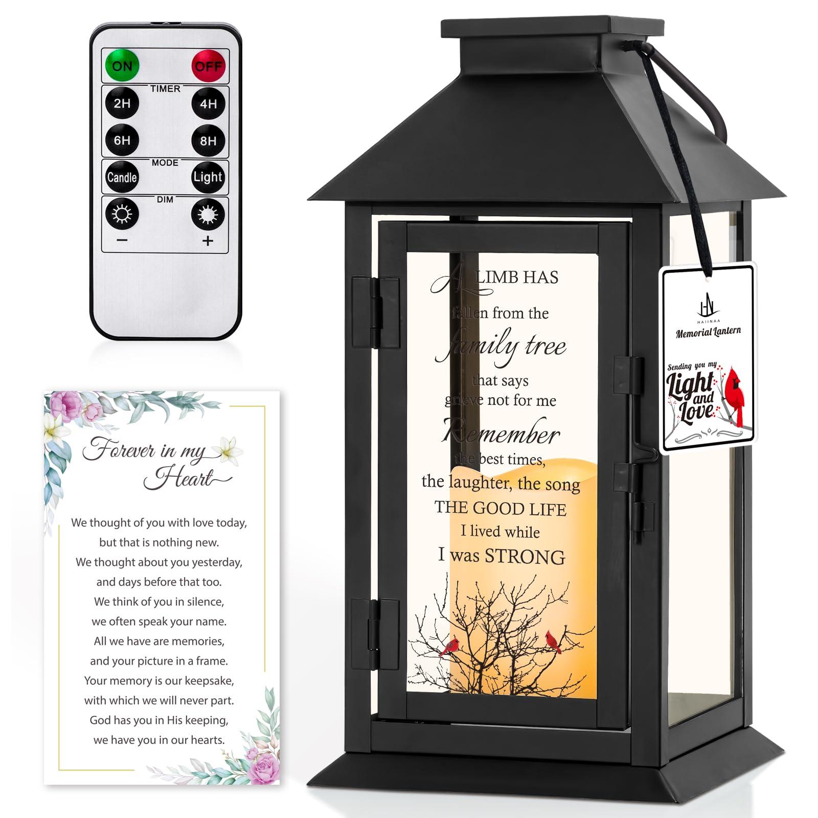 - Meaningful Gift: A unique way to treasure loved ones no longer with us. An attached handle on the top of this memorial lantern allows you to hang it or use it freestanding. The perfect sympathy gift for loss of father, mother, grandfather, grandmother, son, daughter, brother, sister, friends, etc.If you have any questions, please feel free to contact us and we will offer you a satisfactory solution in 24 hours.