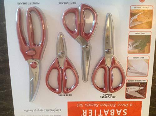 Kitchen Scissors 4 Piece All Purpose Micro-Serrated Stainless Steel Herb Poultry Sabatier Red