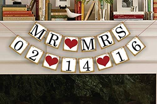 Rarido 1 X New Golden Side Customized Date Bunting Banner Save The Date Wedding Sign Birthday Decoration Supplies - (Color: Red MRMRS)