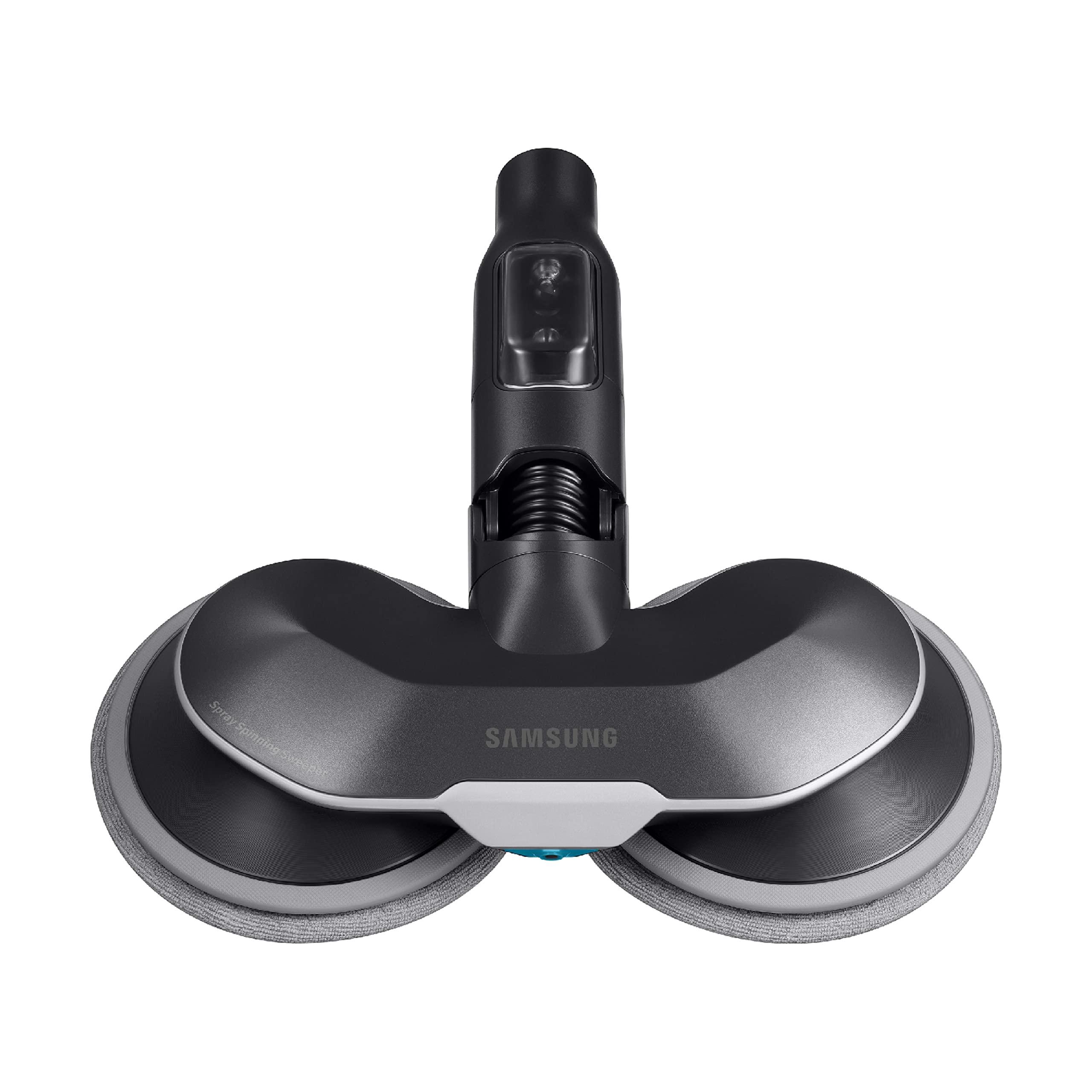 BESPOKE Jet Spinning Sweeper Brush is a cleaning accessory for the Samsung BESPOKE Jet cordless stick vacuum. Dual spinning mopping pads allow for a thorough clean of hard floors. Fill with favorite floor cleaner to spray as you mop.