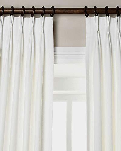 The drape is made of natural linen fabric. The pinch pleats reduces the width of the drape from 54 inches to 27" There are 5 pleats in a panel. The drape is lined with cotton fabric and also weighted at bottom. Dry clean recommended.