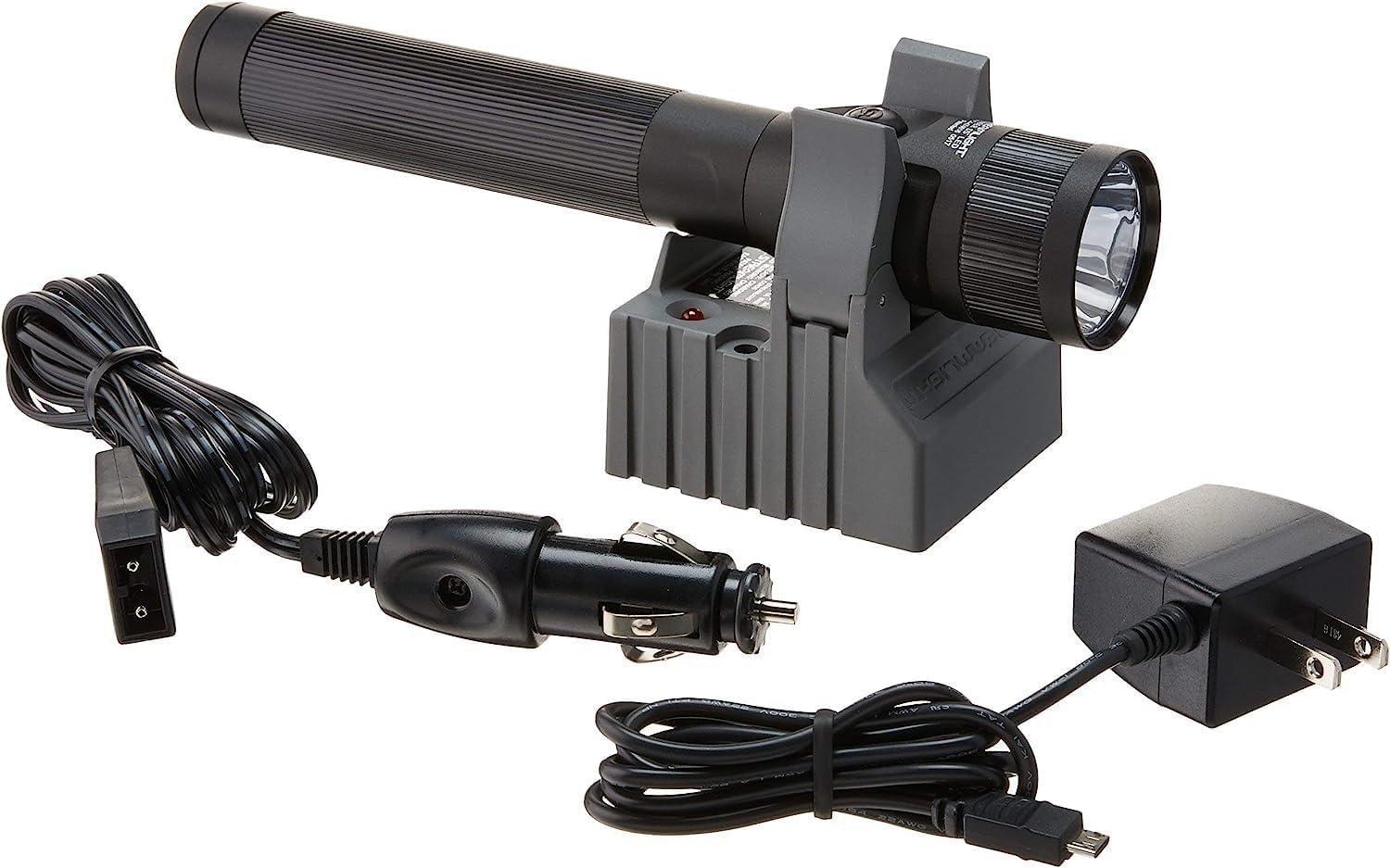This all-purpose flashlight is designed for the broadest range of lighting needs at the best value. The Stream light Stinger DS LED is a rechargeable flashlight with a super-bright LED that triples the brightness of a regular LED. The combination of durable and water-resistant materials for use in extreme conditions with the option of three different levels of intensity, make the rugged and compact Stinger DS LED flashlight ideal for use in law enforcement, outdoor use, security, fire and rescue, hardware/tool, automotive, industrial, home use, and more. Dual-switch technology with multiple lighting modes provides for easy single-handed operation. Designed for long life and tested at one million actuations, the multi-function, on/off push-button switches are located at the head and tail cap. Convenient and easy to use, each switch independently clicks through 3 microprocessor controlled intensity light modes, and strobe mode. Compact and extremely powerful, the Stinger DS LED rechargeable flashlight offers the latest in power LED technology.